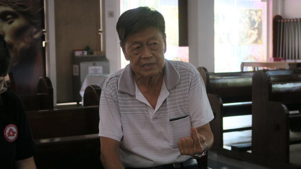 我於1950年在根地咬出生,雙親來自中國廣東漂洋過海,來到根地咬落足,育有十四位孩子(七男七女)。我是老四,在兩歲時就領洗了。在記憶中,因語言及交通不便的關係,小時候住在鄉村的我們,在聖誕節前夕,打包細軟到教堂附近的課室過夜,以便參加在半夜舉行的聖誕節子時彌撒。那時候,教堂沒有主日學,對天主的道理懂得不多。