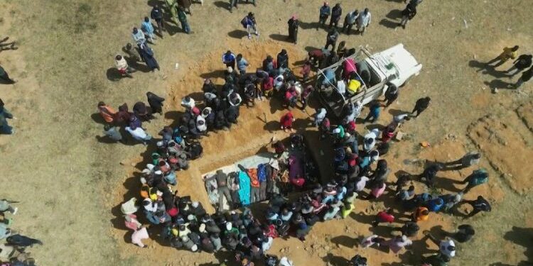 Aerial view of families burying their relatives in a mass grave in Nigeria’s Plateau State  (AFP or licensors)
