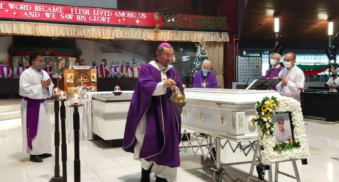 KUCHING — The Funeral Mass for the mother of Kuching Archbishop Simon Poh was held at St Joseph’s Cathedral on Dec 26, 2023. The presider was the Archbishop himself with Archbishops Emeriti Peter Chung and John Ha and priests from the Presbyterium of Kuching Archdiocese concelebrating.