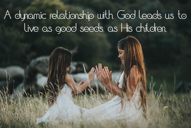 A dynamic relationship with God leads us to live as good seeds, as His children. Jesus sows us into the world, into the places where we are, i.e. our homes, workplaces, parish communities, etc., so that we can be His living and active presence, bringing love, goodness, peace and justice to others.