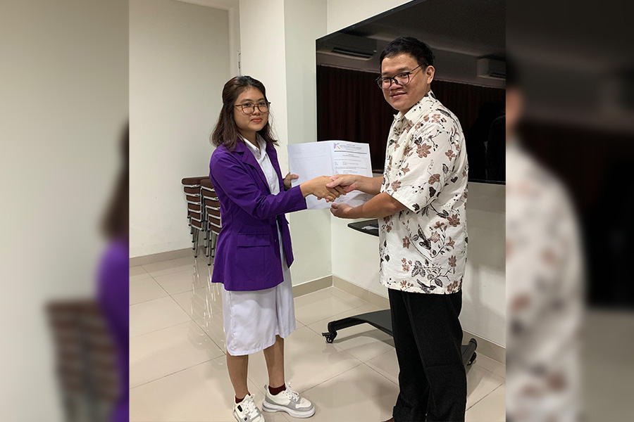 The UWDP Alumni Association, known as IKA, awarded the scholarship in September 2025 to Sherly, a Business Management student, covering her fixed tuition fee (Uang Kuliah Tunggal or UKT).