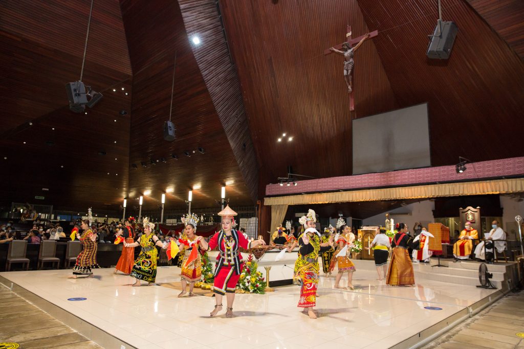 A traditional Dayak dance performed by the Catholic Cultural Dance troupe, followed by Msgr William, Fr Mark and Fr Lazarus giving Gawai messages in their native tongues concluded this year’s Gawai Dayak Mass.