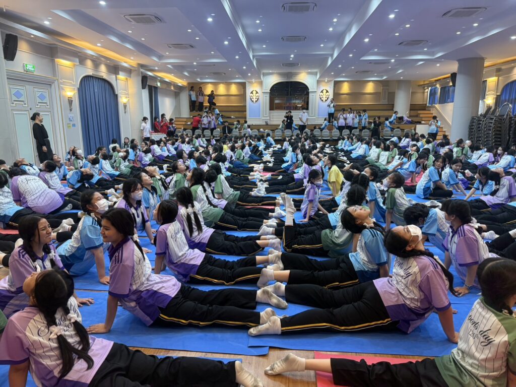 Students from Catholic-run schools in Bangkok participate in a guided physical fitness session as part of a year-long health program supported by Thailand’s National Health Security Office (Photo credit: SPCSS)