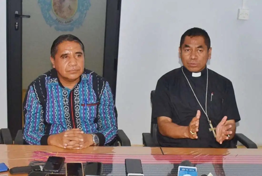 Cardinal Virgílio do Carmo da Silva of Dili (right) and National Election Commission president, Jose Belo during a press conference on Feb. 2. (Photo: Dili archdiocese)
