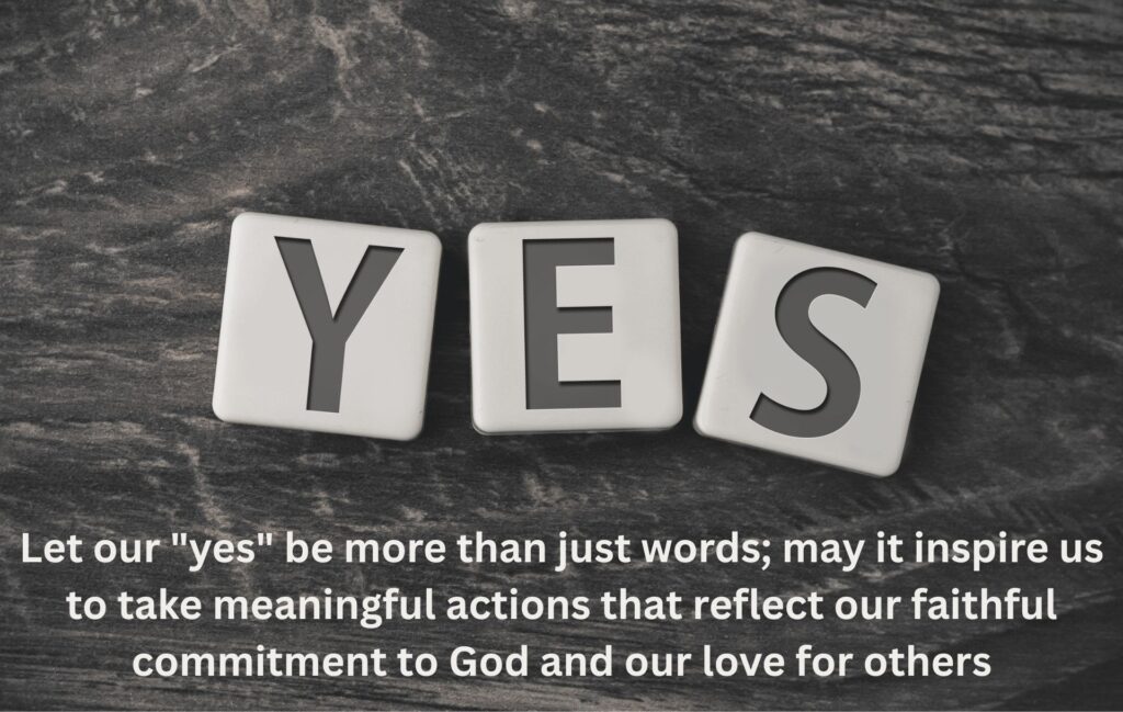 Today presents a new opportunity for us to commit ourselves to God’s call to work in His vineyard, in His mission field. By placing our lives at the loving service of others, we can truly make a difference in their lives. Let our “yes” be more than just words; may it inspire us to take meaningful actions that reflect our faithful commitment to God and our love for others.