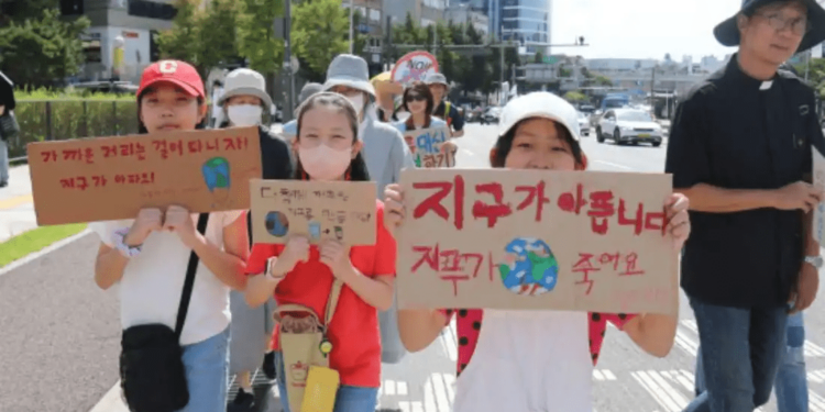 South Korean children participate in a Church-sponsored climate march in the capital Seoul on Sep 23, 2023. (Photo: Catholic Times)