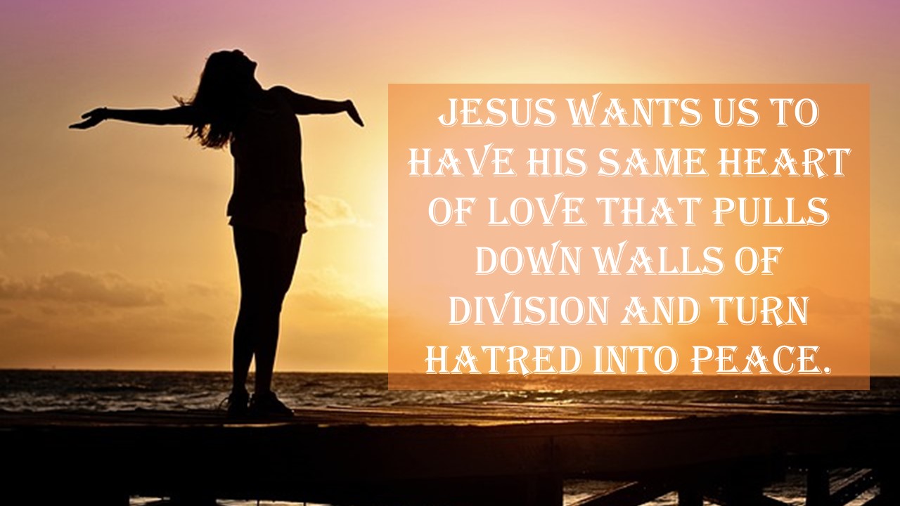 Jesus wants us to have His same heart of love that pulls down walls of division and turn hatred into peace. The good news is that He never