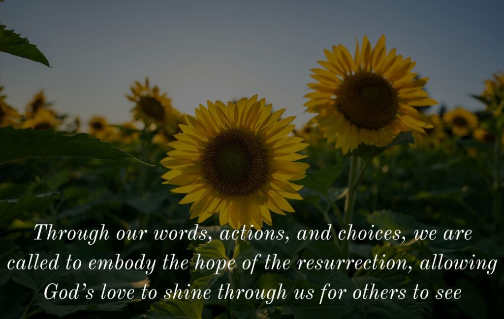 This sign reveals the very heart of God’s powerful love. In Jesus’ death and resurrection, we see that love ultimately triumphs, that truth cannot be silenced, and that life is stronger than the power of death. Though this sign may appear hidden or challenging, it calls for trust rather than proof, a trust that God’s love is at work even when it is not immediately visible. Confronted by this sign, we are invited not merely to believe, but to respond. Trusting in God’s powerful love compels us to commit ourselves to this truth and to bear witness to it in our daily lives. Through our words, actions, and choices, we are called to embody the hope of the resurrection, allowing God’s love to shine through us for others to see.