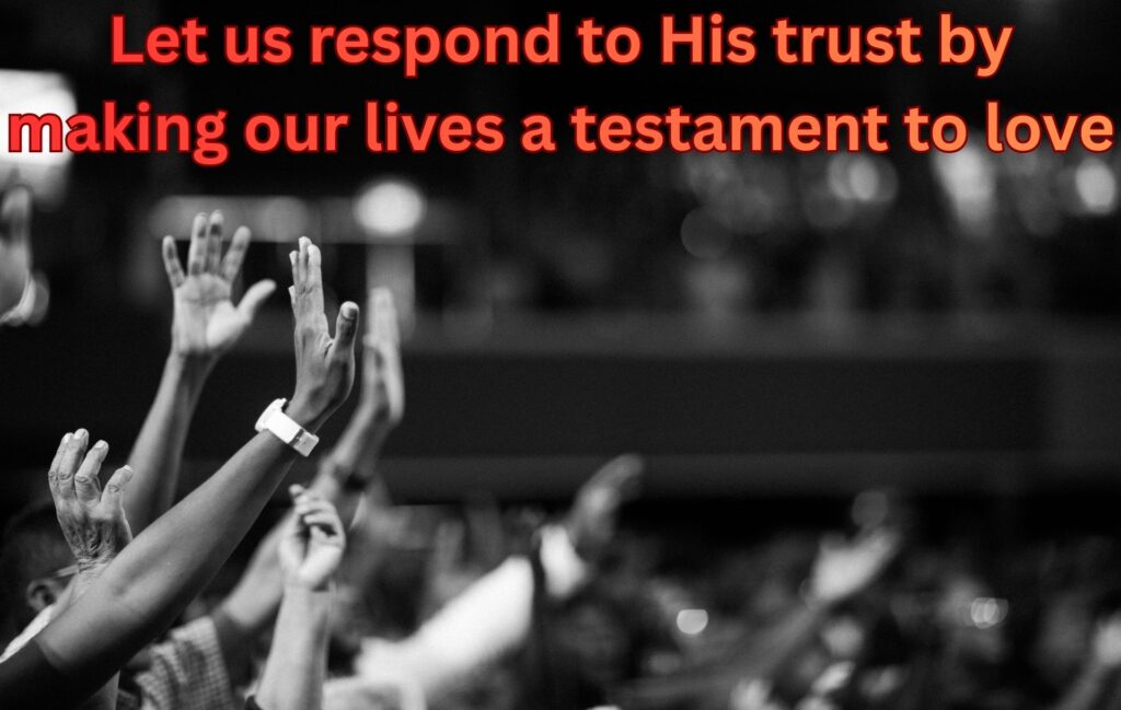 God uses our seemingly small and insignificant actions and words to manifest His presence and love. He trusts that we will assist Him in this mission. Let us respond to His trust by making our lives a testament to love.