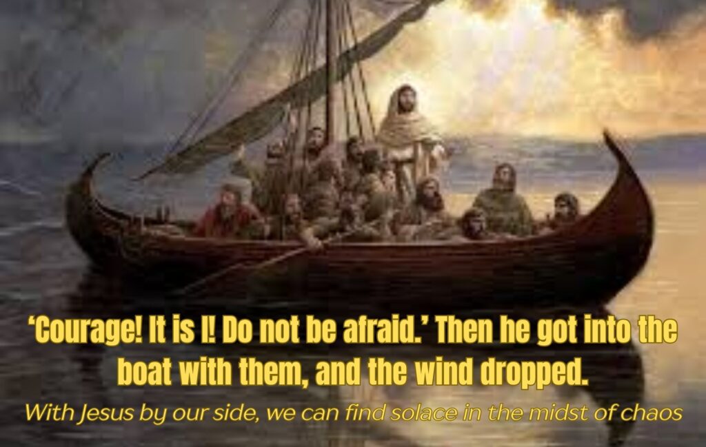 In today’s Gospel, Jesus saw His disciples looking tired and scared as they faced strong winds and big waves. He walked towards them on the water to remind them, and us, that He is in control of every storm we face. In our own lives, we often find ourselves facing strong winds and frightening storms. These challenges can manifest as temptations that shake our faith, family issues that strain our relationships, feelings of rejection that linger painfully, illnesses that challenge our strength, or the profound grief that accompanies the loss of loved ones. Each of these storms can feel isolating, yet Jesus reassures us that He remains in control of our circumstances, eager to guide us through the rough moments we endure.