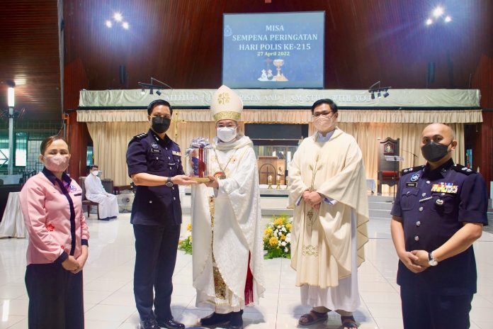 KUCHING – In conjunction with the 215th Police Day Celebrations 2022, Kuching District Police Headquarters organised a Joint Church Prayer Service at St Joseph’s Cathedral on 27 April, attended by about 200 police personnel.