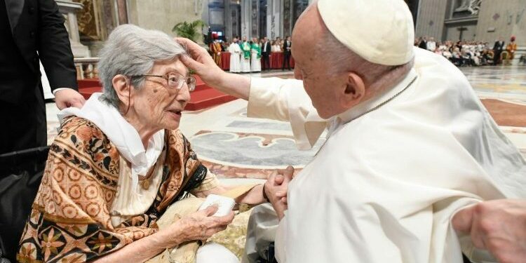 Pope Francis blesses an elderly lady (file photo) (Vatican Media)