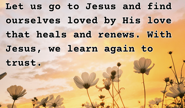 Today, let us recognised that Jesus suffered betrayal. We are not alone in our pain. Jesus tells us, “I am here. I am with you. I understand”. Let us go to Jesus and find ourselves loved by His love that heals and renews. With Jesus, we learn again to trust.