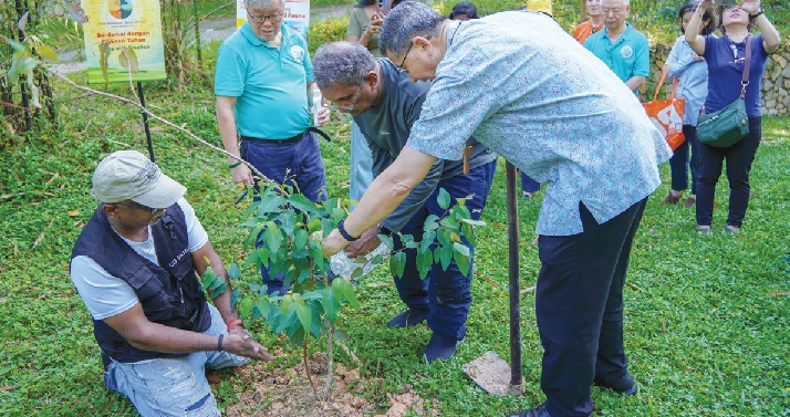 Archbishop Julian Leow and Fr Andrew Manickam OFM Cap planting a tree (Photo Supplied)