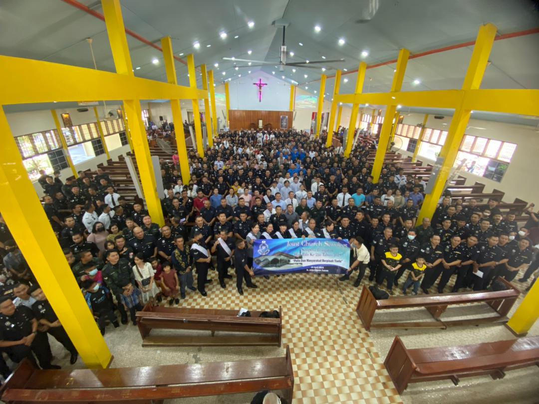 Misa Kudus telah di jalankan pada jam 10.00 pagi yang dipimpin oleh Paderi Paroki Fr Thomas Yip dan dibantu oleh Pembantu Paderi Fr Wiandigool dan Diakon Bradley. Lebih dari 800 orang anggota polis telah hadir dalam Misa Kudus ini.