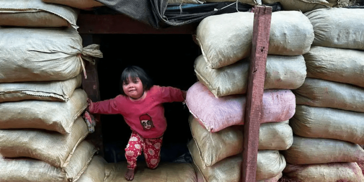 This photo taken on Dec 14, 2023, shows a girl playing in a bomb shelter near her home amid clashes between the ethnic minority armed group Ta’ang National Liberation Army (TNLA) and Myanmar’s military in Namhsan Township in Myanmar’s northern Shan State (Photo: AFP)
