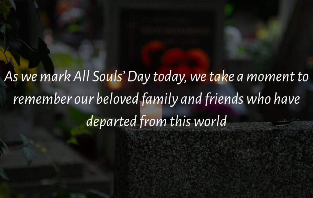 As we mark All Souls’ Day today, we take a moment to remember our beloved family and friends who have departed from this world. We express our heartfelt gratitude for the ways they enriched our lives, knowing that they now live on in the embrace of God. This day encourages us to reflect deeply on the fleeting nature of our lives. Indeed, the time we have on this earth is precious and limited, reminding us of a profound truth: one day, we too will leave this life behind. Every day offers us the opportunity to truly appreciate life and cherish the moments we have by embracing God’s love and sharing it with others.
