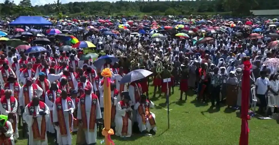 Bishops, religious, and thousands of faithful from across the country and the neighboring Solomon Islands attended the event, held to celebrate the canonization of To Rot on Oct 19 by Pope Leo XIV.