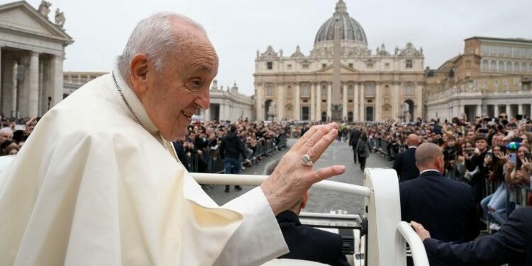 On Easter Sunday, tens of thousands of faithful filled a spring-like St Peter’s Square.