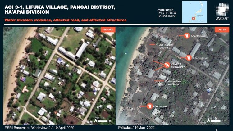 Satellite imagery shows the extent of the damage on Tonga