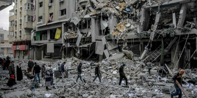 Palestinians walk amid the rubble of destroyed houses in Gaza (AFP or licensors)