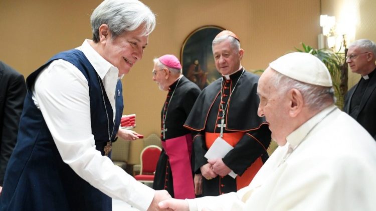 Pope Francis greeting Sister Sister Norma Pimentel during his audience with the delegation of the “Catholic Extension Society” (Vatican Media)