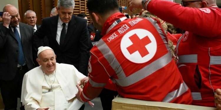 Meeting members of the Italian Red Cross in the Vatican, Pope Francis praises its “irreplaceable service” ensuring humanitarian protection and assistance for victims of war and other disasters.