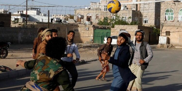 File photo of Yemeni youth playing volleyball on the International Day of Sport for Development and Peace (ANSA)