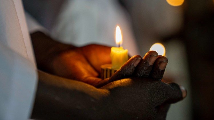 A woman holds a candle during Cardinal Parolin’s visit to Bentiu (nicolaberti_cuamm)