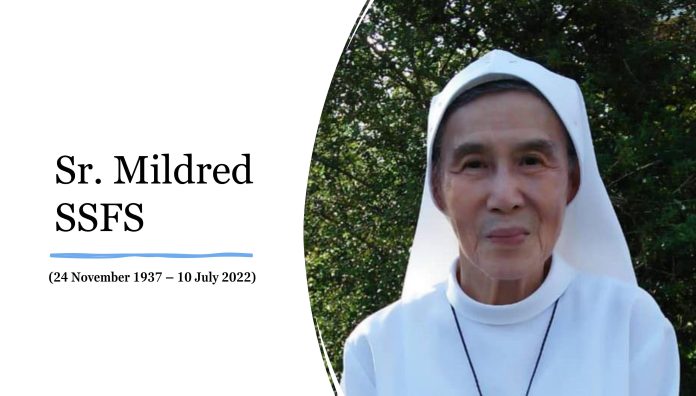 KUCHING — Sr Mildred Chin SSFS, was called home to be with the Lord on 10 July 2022 at 6.15pm at the Home of Santa Clara, the retirement home for the religious sisters.