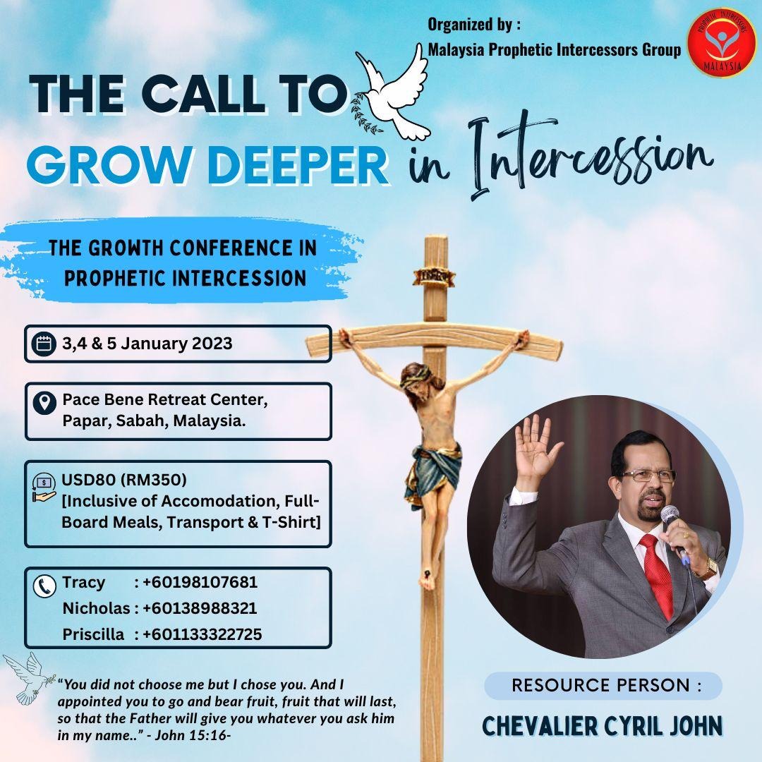MALAYSIAN Prophetic Intercessory Group will be organising 3 Days Program – The Growth Conference in Prophetic Intercession in Sabah, Malaysia from 3rd to 5th January 2023 at Pace Bene Retreat Center Papar.