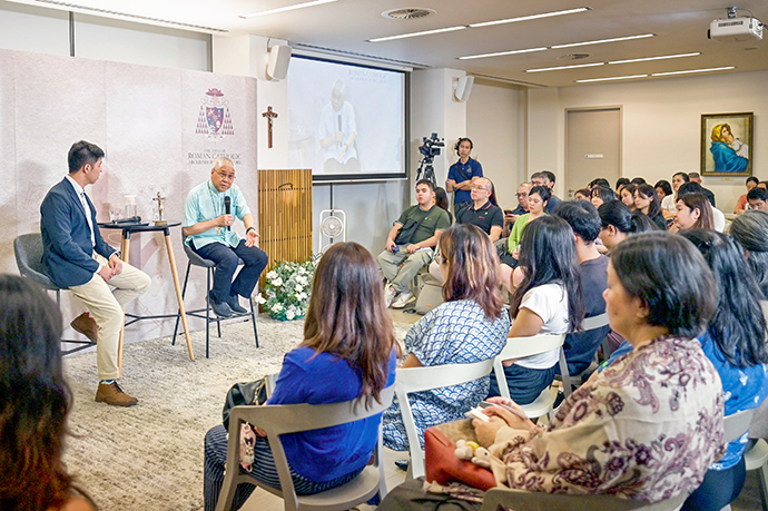 Cardinal William Goh engages participants during his “Heart-to-Heart” dialogue on love and relationships at the Cathedral of the Good Shepherd annexe on Oct 10 (Photo: VITA Images / Catholic News Singapore)