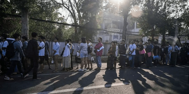 More than 1,000 people lined up at the Thai embassy in Yangon on Friday as young people sought to leave Myanmar after the junta said it would impose military service.